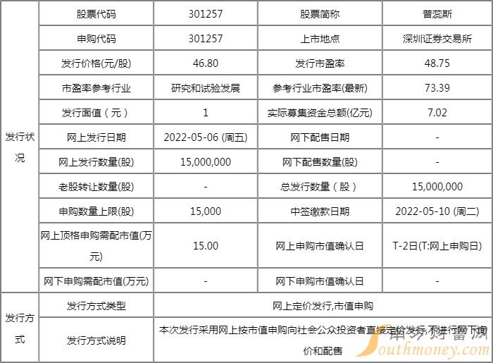 ○普蕊斯(-- --,診股):申購代碼301257,頂格申購需配市值15.00萬元,申購上限1.50萬股,申購價格46.80元,市盈率48.75倍,公司主營醫藥SMO服務。藥明康德(98.05 -5.02%,診股)。