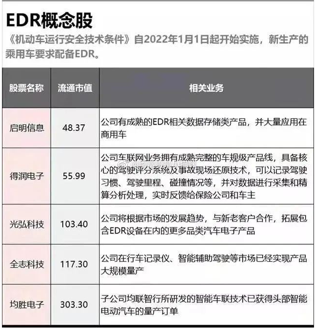 自2022年1月1日起,新生產的乘用車要求配備EDR(即 Event Data Recorder,汽車事件數據記錄系統),俗稱汽車黑匣子,千億市場將開啟;