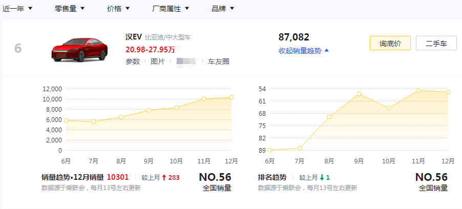 比亞迪在2021年可謂是收獲頗豐,其中漢EV更是創造了自主品牌中的多個記錄,作為一款售價20萬以上的轎車,單月銷量超過一萬輛的成績具有非同一般的意義。國內造車新勢力在進一步壯大,小鵬P7、P5以及蔚來ET5等車型與漢EV的價格重疊會越來越多,競爭也會更加激烈,漢EV是否能夠進一步穩固自己的市場,值得期待。
