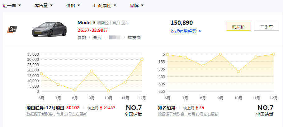 雖然幾經波折,特斯拉Model 3還是將最暢銷中型車的名號收入囊中,月均銷量保持在一萬輛以上,已經對傳統豪華品牌BBA形成了一定威脅。從產品層面上來看,性能和智能配置是特斯拉Model 3最吸引人的地方,生產工藝的創新以及對成本的把控值得國內新勢力車企學習,遠比堆砌內部配置要更實際一些。