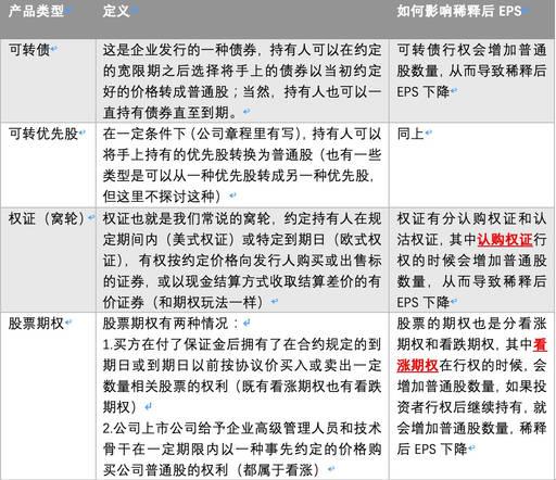 這個EPS則是加入了別的因素來更綜合的考慮EPS,比起剛才說的EPS要更加貼合實際情況。我們知道除了以上幾種情況以外,還有很多結構性產品會改變普通股的數量,基本EPS沒有稀釋后EPS考慮得那么全面。