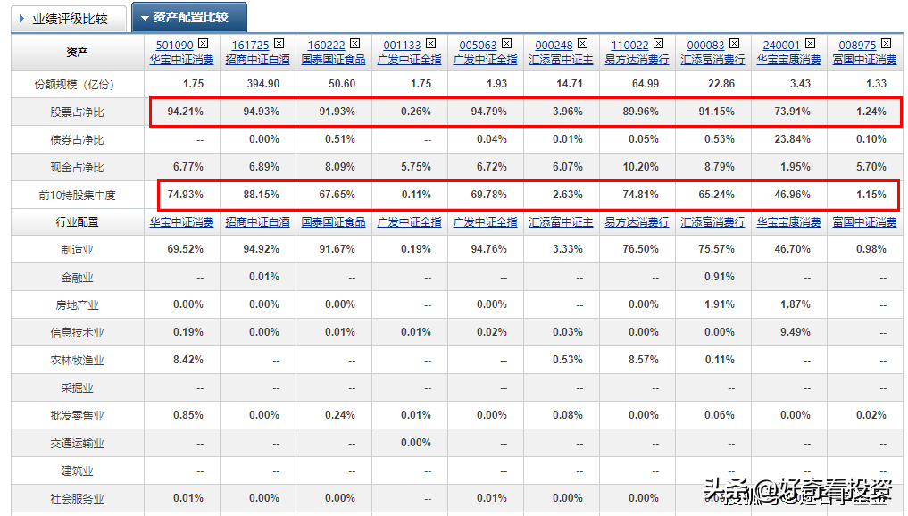 7、富國中證消費50:白酒、免稅、食品類、調味品、家具等。整體持倉行業相對均衡。