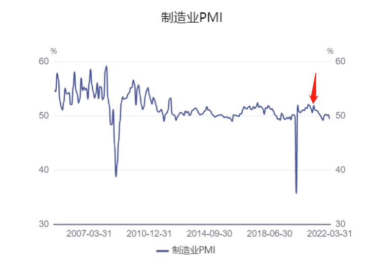 比如,2020年9月,PMI就掉頭向下,然后小幅反彈,隨后在2021年初開始趨勢性下跌。