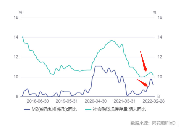 為了驗證降準降息是否成功,就需要看兩個指標,一個是M2,另一個是社融。