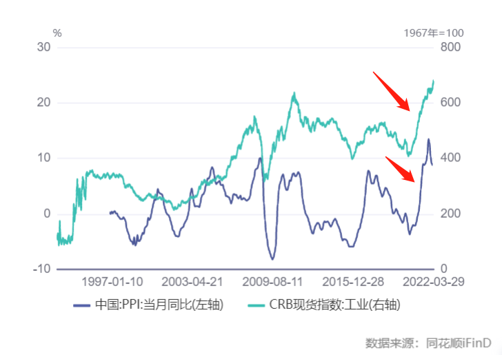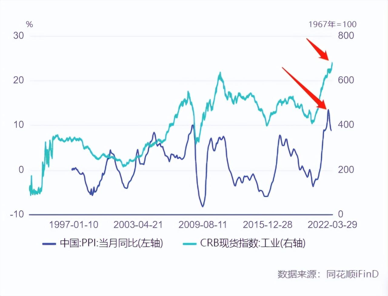 比如我們現在就是PPI回落了,但CRB還在上升。