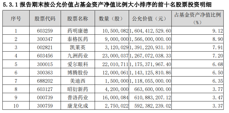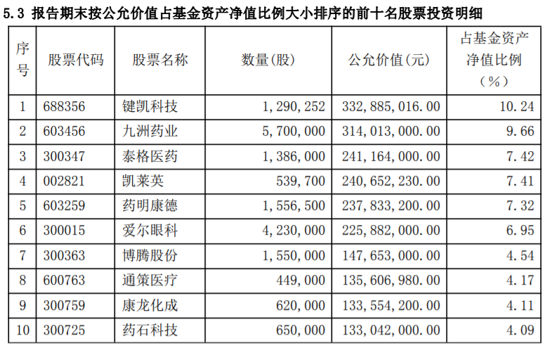 三季度依然戰略性看好創新藥及創新藥產業鏈、器械、醫療服務、消費醫療等行業,持倉均集中在這些領域。