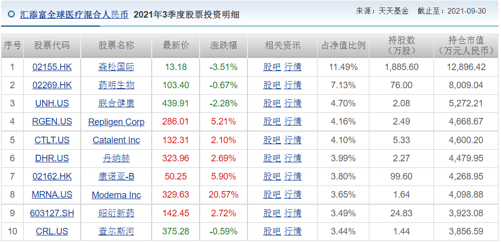10、匯添富全球醫療混合人民幣(004877)