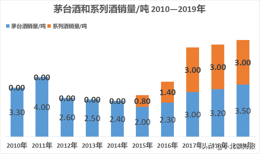 茅臺酒和系列酒的銷量 2010—2019年