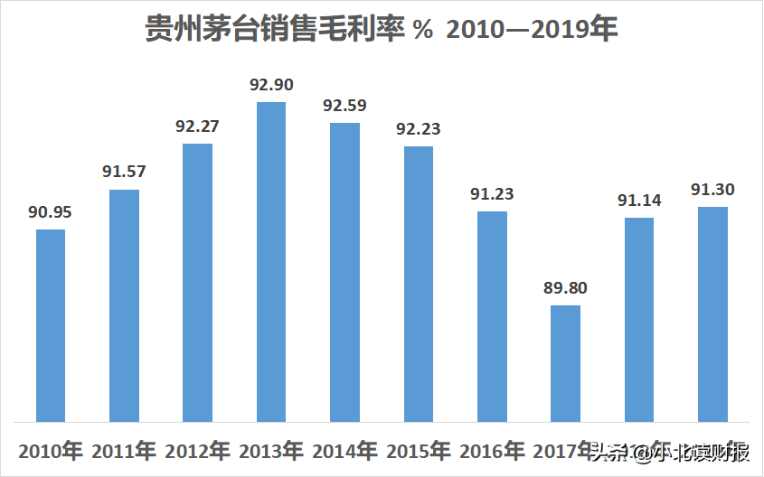 貴州茅臺銷售毛利率 2010—2019年