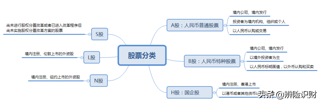 最常見的股票分類是按照股票發行方式,股票分為A股、B股、H股、N股、L股、S股。