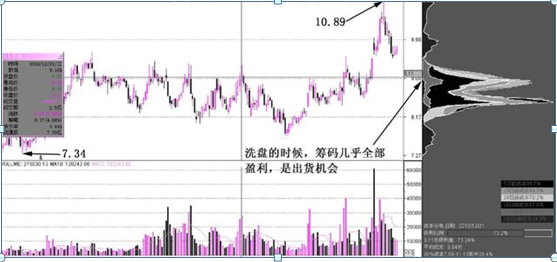 從籌碼分布圖上來看,正是在莊家持續不斷地打壓和拉升股價,散戶不斷換手股票的過程中,才造成了籌碼不斷向股價震蕩的中心移動。一旦莊家調倉到位之后,股價的拉升也就成為可能。洗盤完畢之后,籌碼高度密集分布于震蕩調整形態的股價,是很容易被拉升至高位的。籌碼被調整到位后,股價的進一步創新高就有了可能。尤其是成交量能夠突然放大的時候,股價的籌碼密集分布區域,很可能被順利地突破的。這個時候,散戶在股價震蕩洗盤的時候建倉買入的股票,將很快就獲得相應的投資收益了。