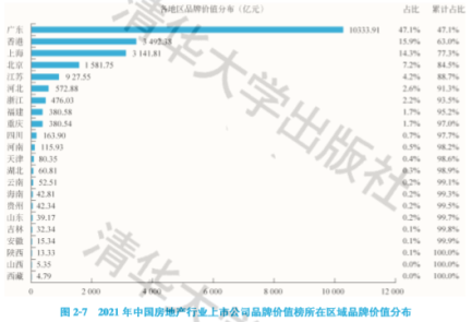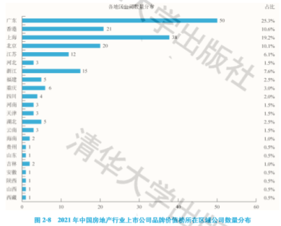在2021中國房地產行業上市公司品牌價值榜中,198家公司來自22個地區。