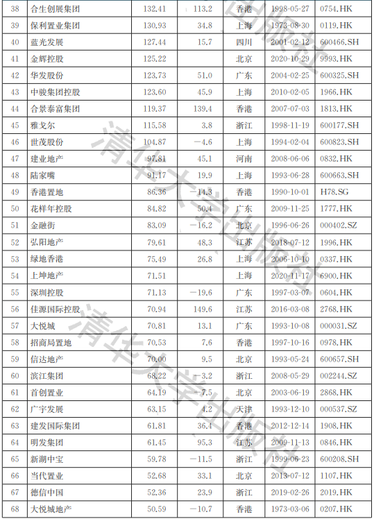 在2021中國房地產行業上市公司品牌價值榜中,港股上市的中資股公司93家,品牌價值合計13078.38億元,占行業榜單總計品牌價值的59.6%,排在第一位。