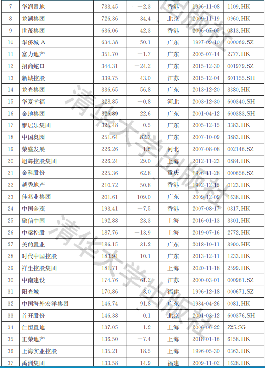2021中國房地產行業上市公司品牌價值TOP100