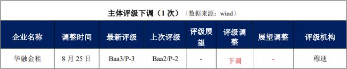 3.華融金租:穆迪下調長期本外幣發行人評級至“Baa3”,惠譽調整評級觀察至“發展中”
