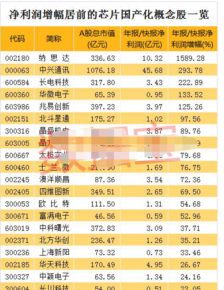 以下是智能芯片部分股票名單