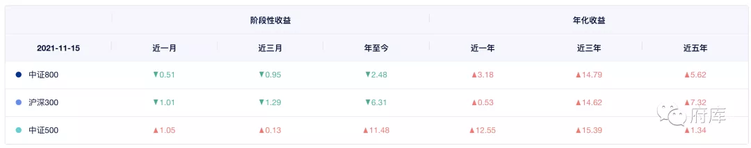 今天我們聊一下業績基準中的另外一個權益類基準指數,中證800指數。那么這個指數包含的成份股是哪一些呢?正好就是滬深300加上中證500這800只股票。下圖是中證800指數近5年的走勢情況,并且增加了滬深300與中證500指數做對比。中證800指數基本上網羅了市場中最具備投資價值的大中盤股票。