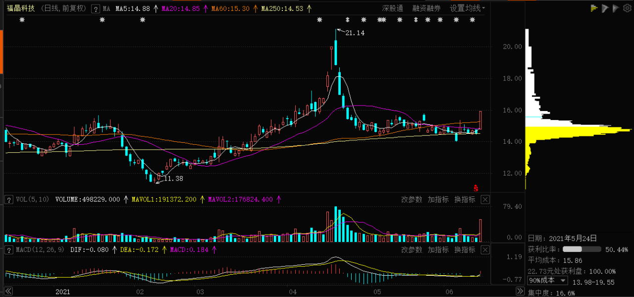 福晶科技剛剛經歷大洗盤,目前籌碼高度集中,今天是洗盤后的首板,短線受熱錢炒作,今天龍虎榜中全部為游資參與買入占比15.16%,賣出占比11.73%,主力資金凈流入過億,短線可能繼續上攻。