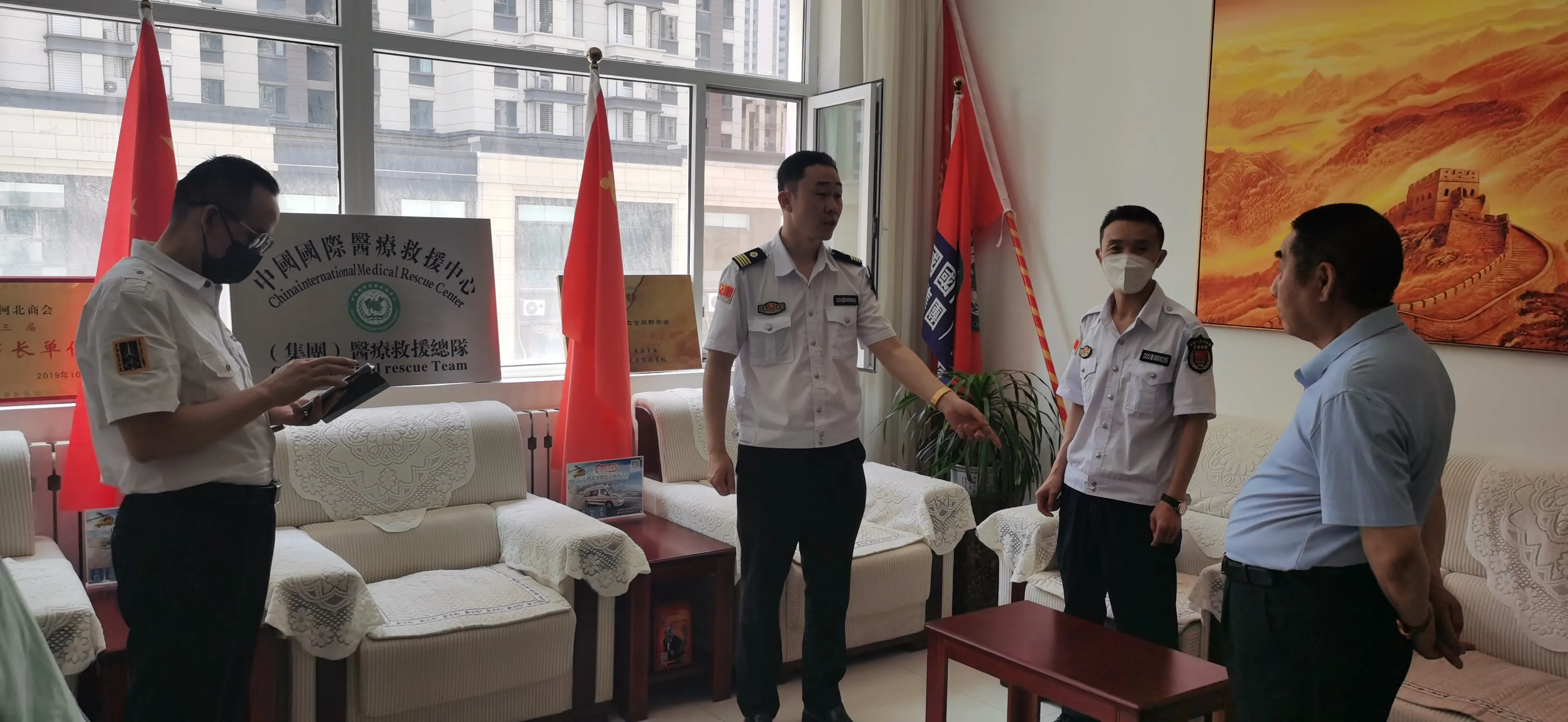 2022年06月11日中國國際救援中心紀委書記王鈺華,辦公室主任李玉珍,助理韓俊成,智慧科學院院士馮祥山等同志赴山西國際救援醫療總隊,電話(96120)指導工作……