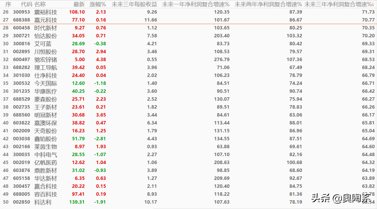 NO.26 ,未來三年每股收益9.26元,凈利潤復合增速71.73%;