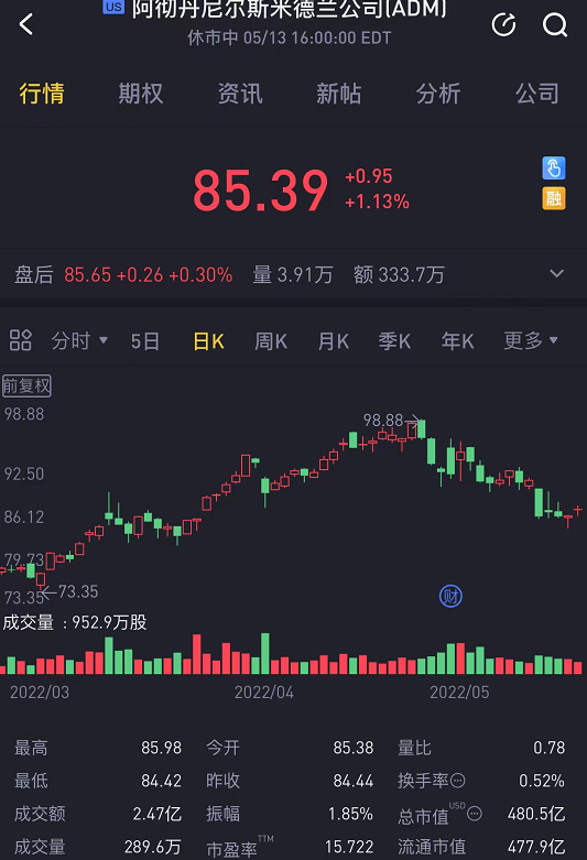 美國ADM(The Archer Daniels Midland Company,ADM)是一家全球食品加工和商品交易公司。是全球最大油菜籽、玉米、小麥、可可等農產品加工廠商。ADM持有豐益國際22.31%的股份,而豐益國際是控股A股上市公司$(SZ300999)$ 。