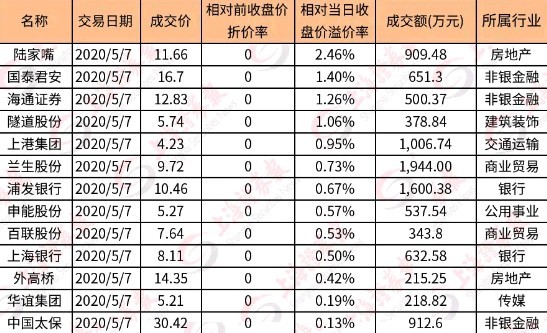 在機構通過大宗交易買入的股票中,5月7日集中出現13筆溢價成交的大宗交易,合計成交金額為9851.7萬元。