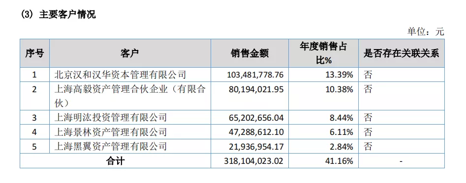 公司的主要客戶也是漢和漢華、高毅資產、景林資產等百億私募基金,客戶集中度較高,比較依賴知名私募基金。