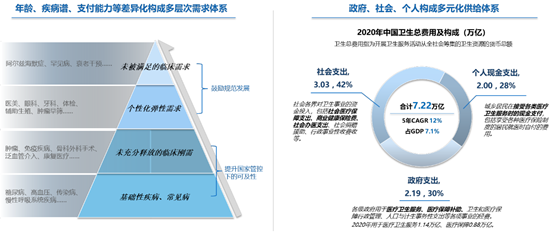 首先,我們投資醫藥大健康行業的最底層支撐邏輯是什么?在我們看來,醫藥大健康行業是兼具科技股和消費股屬性的,需求永無止境,創新源源不斷,這對應著供需雙方的分析。需求端受益于人口老齡化帶來的診療需求提升、人均收入水平提升帶來的自我保健和差異化需求提升等;供給端主要靠創新來驅動,比如隨著對疾病機理的了解越來越深,我們對相關疾病的治療手段在不斷升級,這就是典型的創新驅動。因此,只要我們對自身健康的追求不停止、同時科學技術在不斷前行,我們對于醫藥行業就不應該有擔心,能顯著改善供需雙方矛盾點、降低系統運行成本的公司都可能是好的投資標的。
