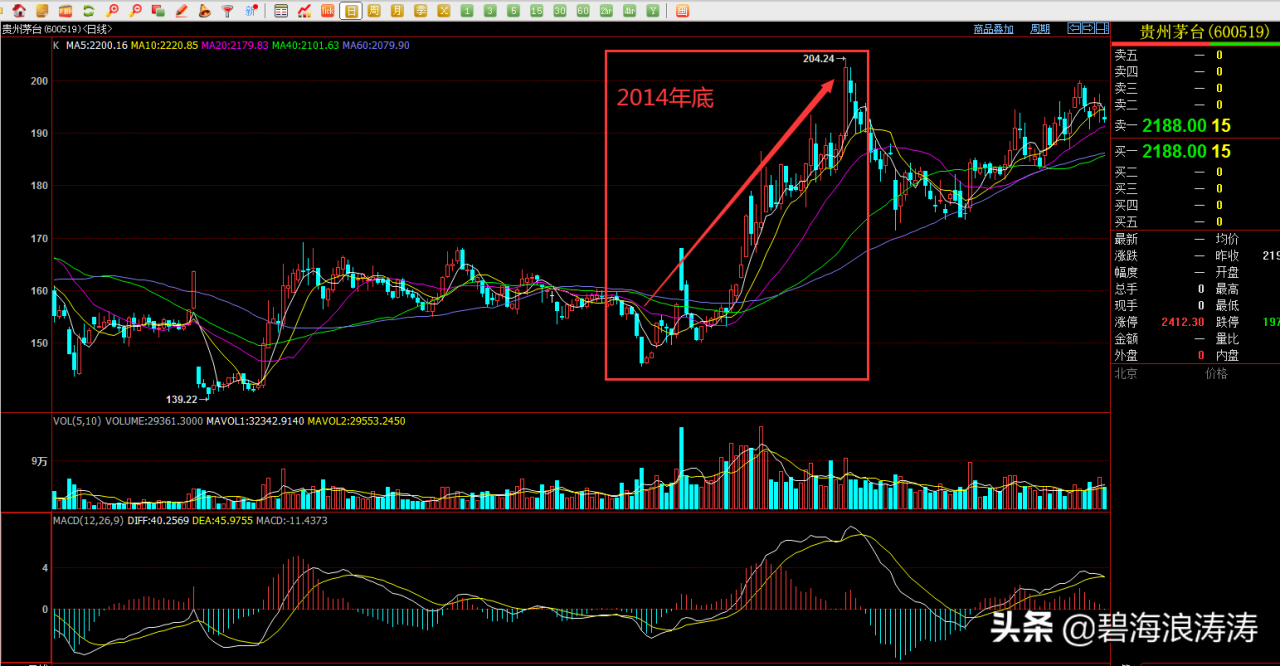 2014年底,茅臺股票有一波明顯的上漲行情