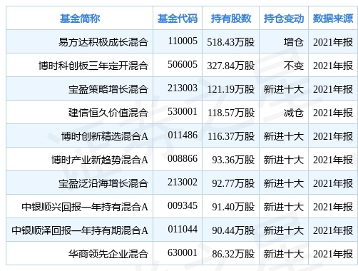 3月10日(688518)漲6.06%,收盤報30.63元。根據2021年報基金重倉股數據,重倉該股的基金共55家,其中持有數量最多的基金為易方達積極成長混合。易方達積極成長混合目前規模為37.01億元,最新凈值0.6559(3月9日),較上一日下跌0.49%,近一年上漲14.86%。