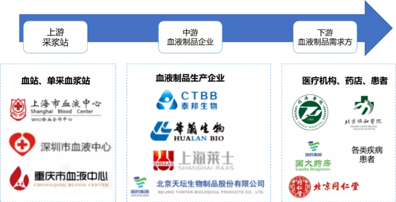 血液制品行業的產業鏈上游是采漿站,包括血站(即采集獻血者全血的血站)和單采血漿站(即僅采集獻血者血漿部分的血站,通常利用全自動單采血漿機分理出獻血者血液中的血漿部分,將血細胞輸回獻血者,使其更快恢復體力)。產業鏈中游是血液制品生產企業,典型代表包括泰邦生物、、、、等。產業鏈下游是血液制品需求方。血液制品先進入各級醫療機構、藥店等,進而在專業醫師、藥師的指導下被患者應用。