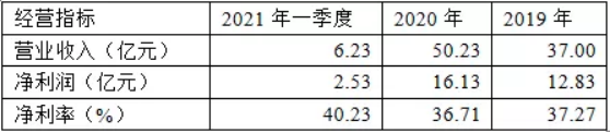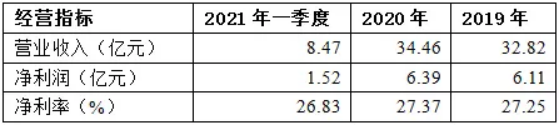 天壇生物2020年實現營業收入34.46億元,較2019年同比增長5%;實現凈利潤6.39億元,較2019年同比增長4.6%。2020年凈利率為27.37%,較2019年有小幅增長。