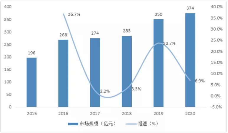 根據前瞻產業研究院數據,2015年-2020年,我國血液制品行業市場規模呈逐年增長趨勢,增速呈波動變化。2020年血液制品行業市場規模為374億元,較2019年同比增長6.9%,增速較上一年下降較多,主要是因為疫情影響了人們的出行活動,進而影響了血液制品主要原料血漿的采集。