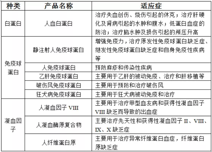 血液制品的下游為患者,患者通過醫院或藥店獲取血液制品。最常用的血液制品為人血白蛋白,主要用于糾正因大手術、創傷、器官移植等引起的急性血容量減少;處理大面積燒傷、呼吸窘迫等引起的體液水、電解質和膠體平衡失調,以防止和控制休克;低蛋白血癥等。