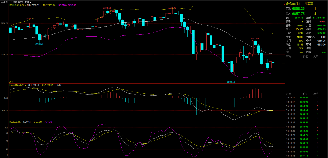 納指日線來看,下方支撐位在6843一線,上方壓力在6895一線,上方二線壓力在6950一線,四小時來看,上方承壓6880一線,下方支撐在6850一線,下方二線支撐在6822一線,下面我們簡單看看今日操作建議!