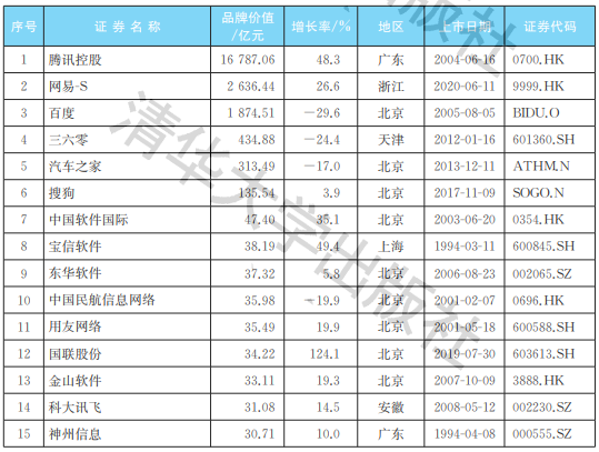 2021中國互聯網行業上市公司品牌價值榜TOP30