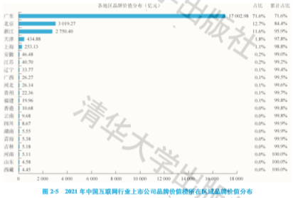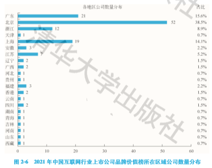 在2021中國互聯網行業上市公司品牌價值榜中,135家公司來自21個地區。
