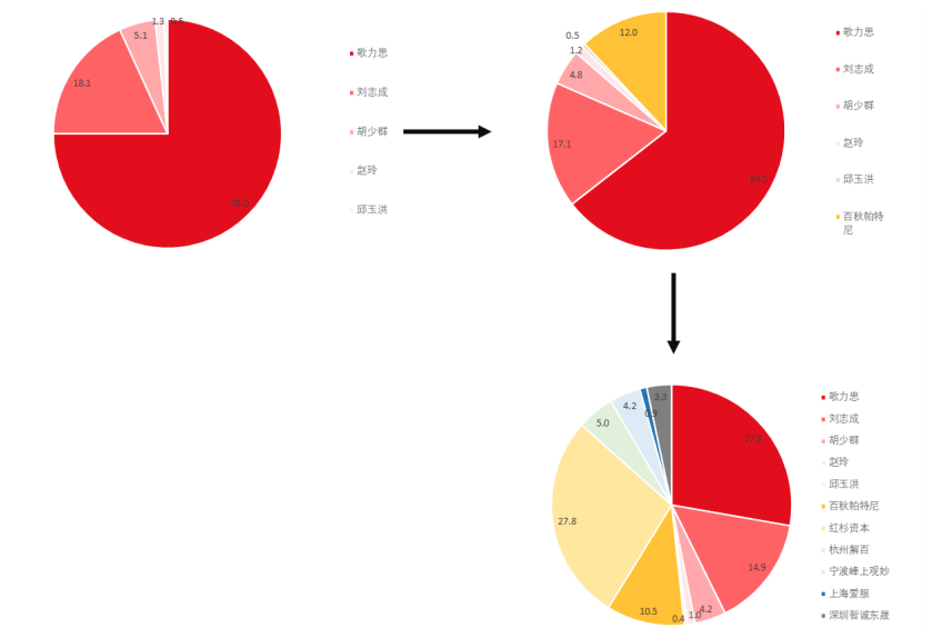 2019年12月15日,公司發布公告,紅杉資本等A輪投資人受讓歌力思持有的百秋網絡28. 69%股權,同時紅杉資本對百秋網絡增資1.5億元。此外,歌力思出于激勵目的,同意創始股東及其一致行動人認購百秋網絡16.3 萬元新增注冊資本,對應14%股權。