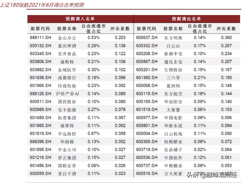 上證180指數2021年6月中金公司預測的調倉名單: