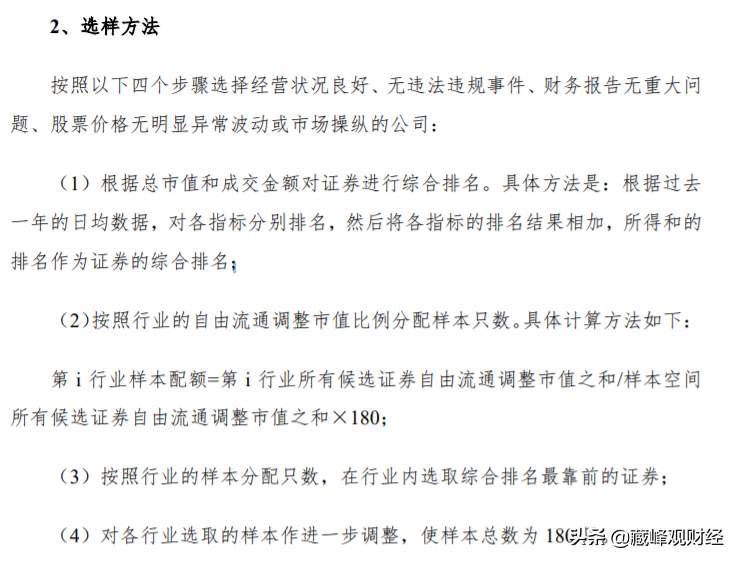 中證指數公司發布的編制方案當中看到審核樣本股的參考根據: