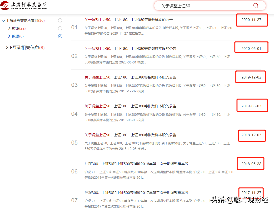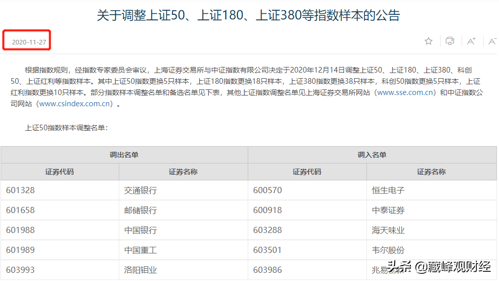 根據指數定期調整規則,上證50、上證180、上證380、滬深300指數等重要指數每半年調整一次股票樣本,實施時間分別為每年 6 月和 12 月的第二個星期五的下一交易日。