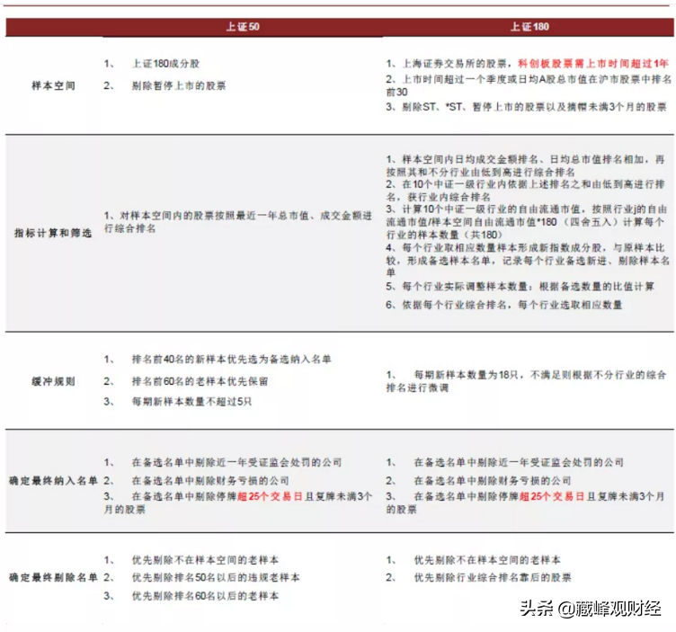 下圖為上證50指數和上證180指數定期調整樣本股篩選規則: