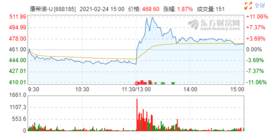康希諾2月24日股價變化