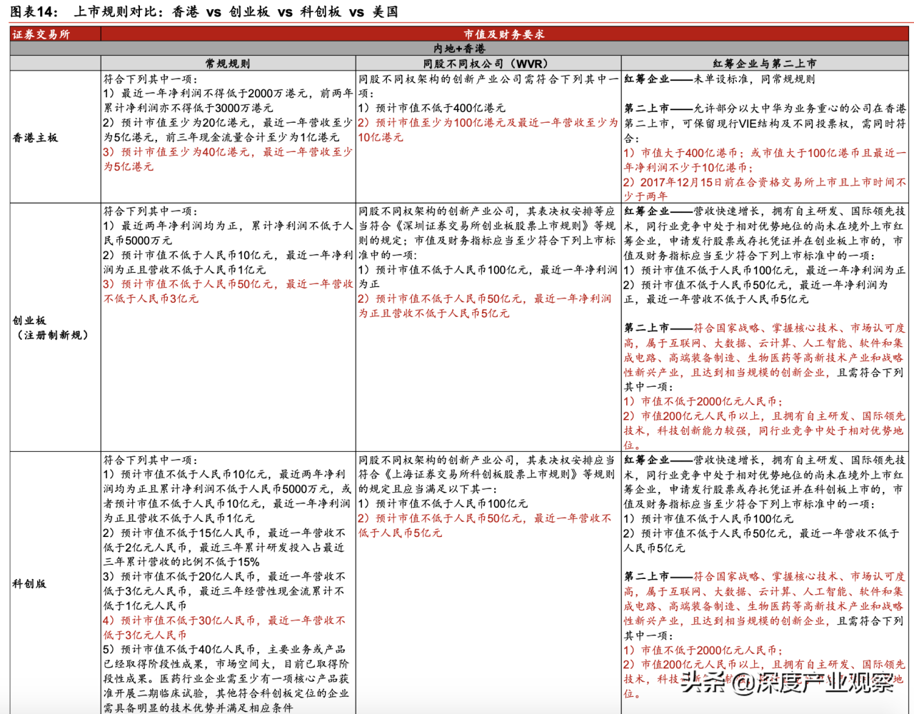 【上市規則對比:香港 vs 創業板 vs 科創板 vs 美國】