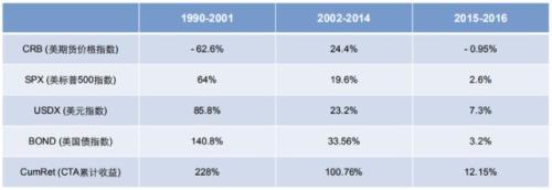 CTA策略從70年代開始就作為一個獨立的策略正式開始運作。我們可以看到,2008年以來,幾乎每一次證券市場大的調整,與標普指數相比的CTA基金業績在當年都會有較高收益 。