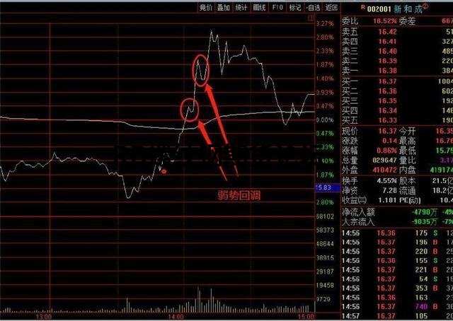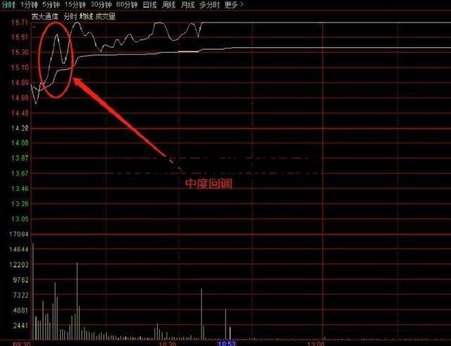 在分時圖中一波上漲之后,在回調時間相同的情況下,回調的力度越小,越說明該股越強勢,就越利于接下來的行情的再度上漲;如果回調的力度越大,那么說明該股越弱勢,就越不利于接下來的股價的再度上漲。