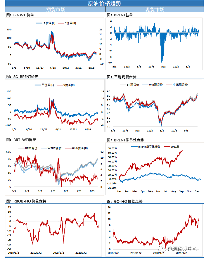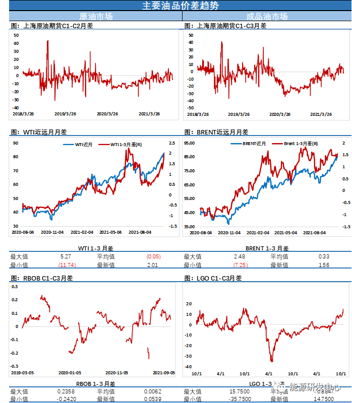 【3】油價脫離多年高位,美國制造業數據不佳加劇需求擔憂;油價周一從多年高位回落,收盤漲跌互現,美國9月工業生產下降,令稍早對需求的熱情降溫。美國9月工廠生產創七個月最大降幅,因全球半導體供應持續短缺打壓汽車生產,進一步證明供應限制正在阻礙經濟成長; 高級分析師Phil 稱,油市開盤時非常積極,但美國工業生產數據疲弱導致人們對需求失去信心;布倫特原油期貨下跌0.53美元,結算價報每桶84.33美元,跌幅0.62%,稍早觸及2018年10月以來最高86.04美元;美國原油期貨(WTI)上漲0.16美元,結算價報每桶82.44美元,漲幅0.19%,稍早觸及2014年10月以來最高83.87美元;上周兩大合約均上漲至少3%;產量預期上升,進一步打壓市場人氣。美國能源信息署(EIA)在其鉆井生產率報告中表示,德克薩斯州和新墨西哥州二疊紀盆地的石油產量預計在11月將增加6.2萬桶/日,至480萬桶/日;預計11月七大頁巖層的石油總產量將增加7.6萬桶/日,至829萬桶/日;油價稍早一度走高,因市場參與者預計限制放松和北半球將迎來冷冬將提振需求