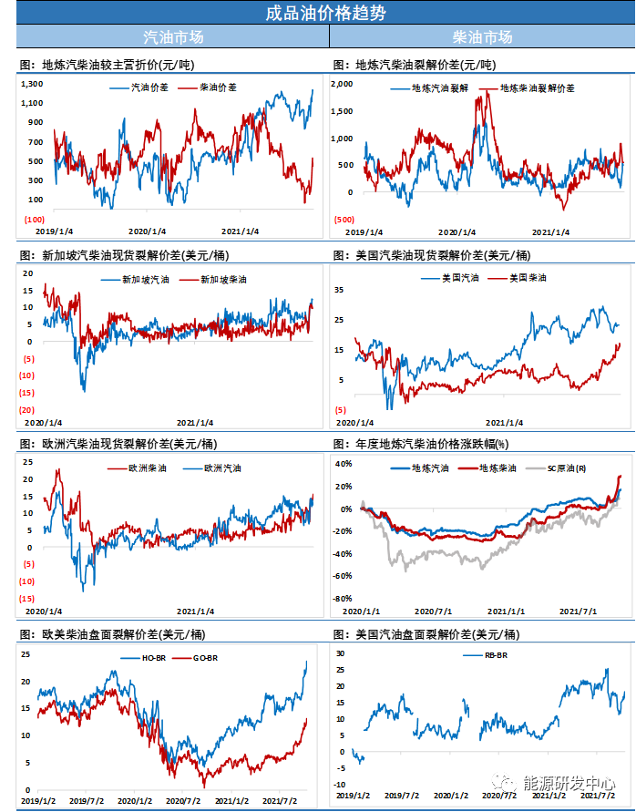 現在的情況似乎要比2018年好太多,當前的全球成品油需求比較好,汽柴油的裂解價差也都維持在較高的位置上。美股的走勢暫時也沒有出現明顯的崩盤跡象。雖然疫情的影響仍在,但似乎難以大幅影響到當前的原油市場。而在伊朗方面,伊核談判的進程開始推進,目前并未有明確的時間表。現在和2018年比較相同的是,美國都對高油價產生了極其厭惡的情緒,美國想要抑制高油價似乎也只能通過提高產量來進行。目前看美國國內產量正在快速恢復,EIA預計11月美國原油產量將在增長7.2萬桶/日,至于能否迫使沙特為首的OPEC提升產量才是關鍵。所以,原油價格是否會大幅走弱,我們只需要等待明確的信號即可,如果美國一直停留在不痛不癢的呼吁階段,那么原油價格仍將維持高位震蕩為主。不過現階段我們還是要警惕油價回落風險,通常變盤行情往往是一些突發的事件引發。