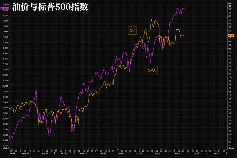 油價與標普500指數的走勢相反。
