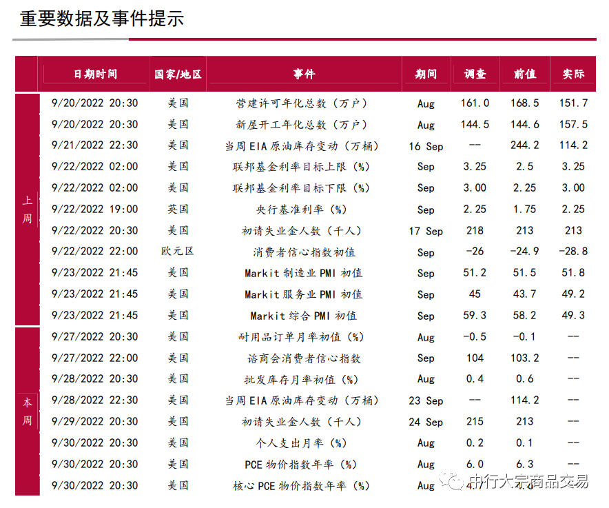 整體來看,目前油市情緒整體悲觀,強勢美元以及市場對經濟衰退的擔憂將繼續成為油價最大的利空因素。我們認為在宏觀形勢明朗前,油價交易重心將大概率進一步下移。本周關注OPEC+集團對油價下跌的應對,以及烏東四州公投結束后俄烏局勢的走向。